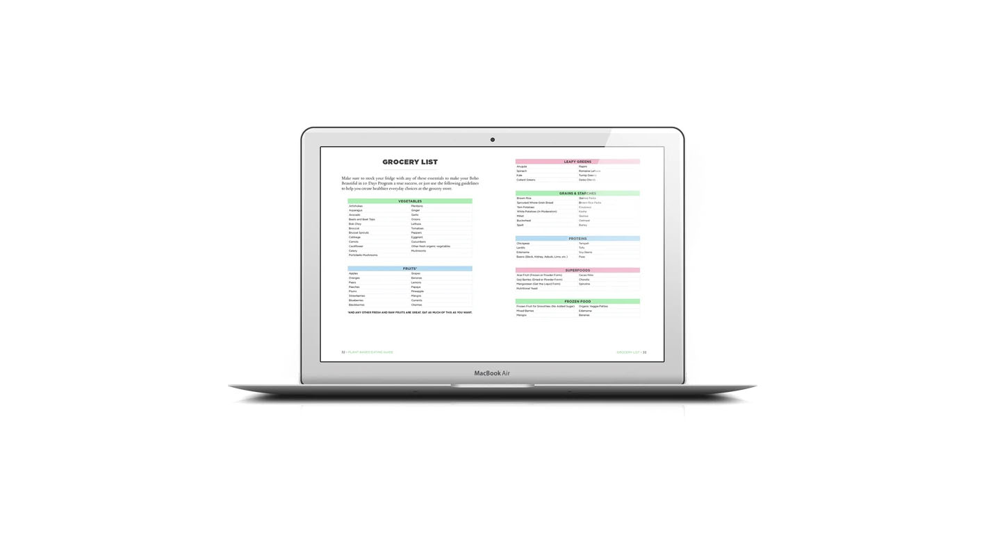 The Happy Healthy Plant Based Eating eGuide is a book written by Juliana and Mark based on their own experiences, research, and successes eating a plant-based diet and living a plant based lifestyle. A great guide to have if you've ever wanted try out a plant-based diet or add some amazingly healthy recipes into your regular kitchen rotation. It also comes as the wonderful companion piece when you purchase the Boho Beautiful in 10 Days Program.