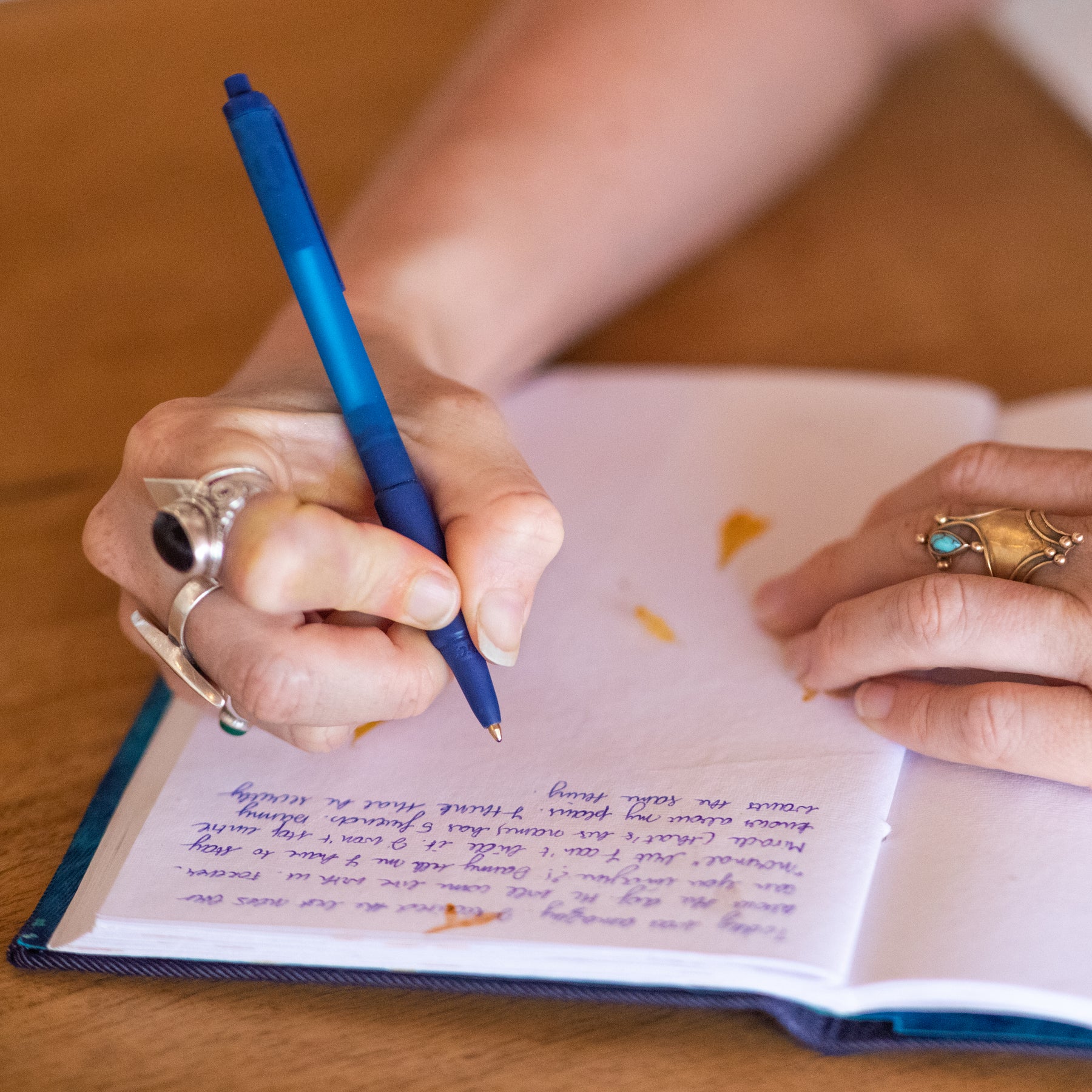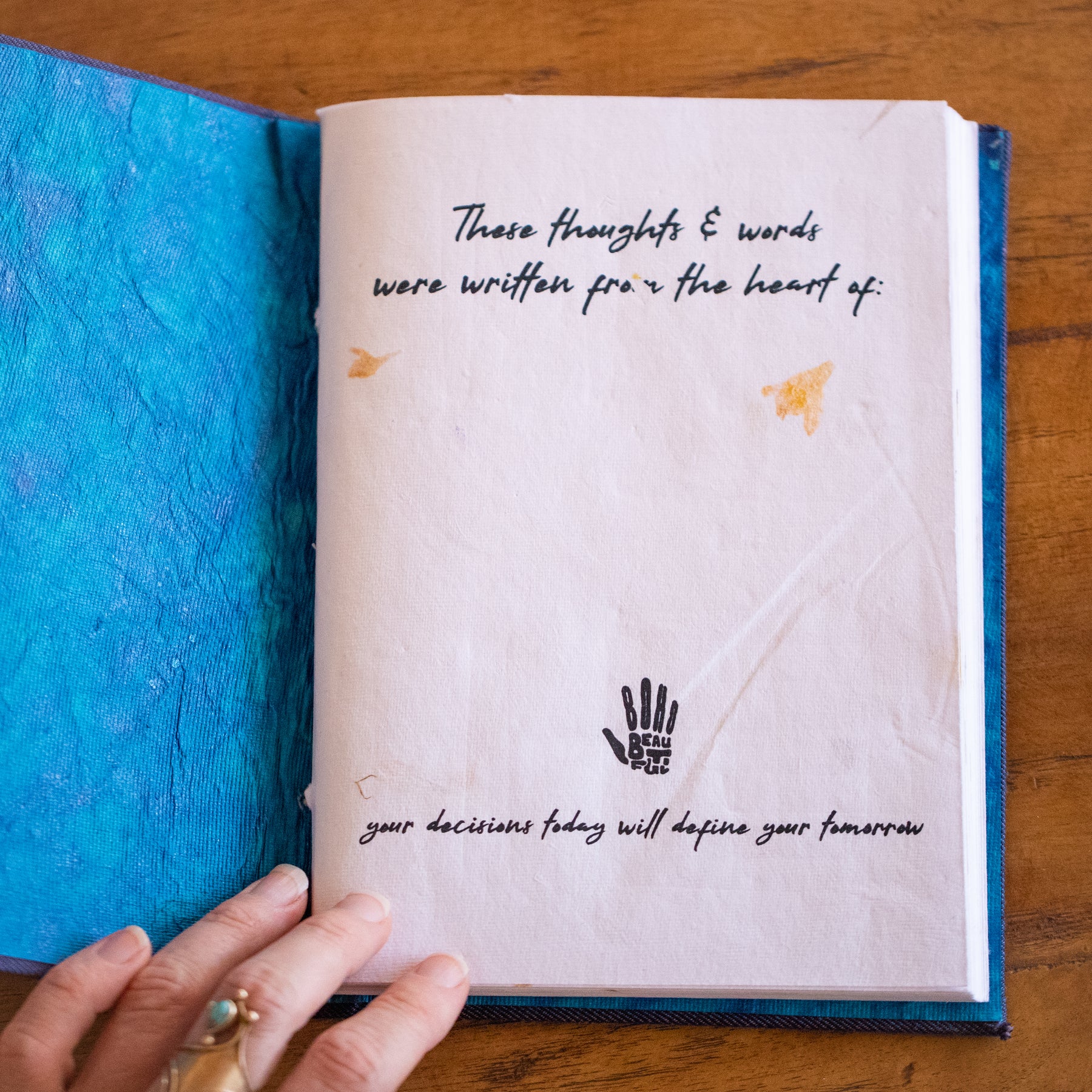 Each journal is meticulously hand crafted featuring a beautiful cotton cover and binding, 80 flower petal-pressed pages, and organic inks.